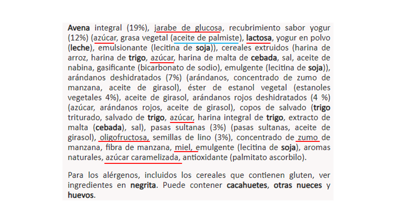 Y también quiero mencionar un detalle. Al igual que he comentado anteriormente con las galletas fuente de fibra y con una composición nutricional bastante pobre, cuando hablamos de declaraciones de salud, nunca está demás comprobar la lista de ingredientes.